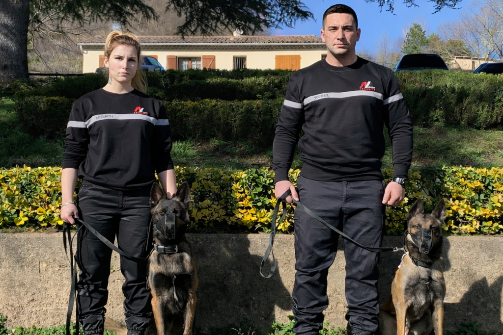 Le conducteur canin assure la sécurité des sites sensibles grâce à l’intervention coordonnée de l’agent et de son chien, dissuadant et détectant toute intrusion.